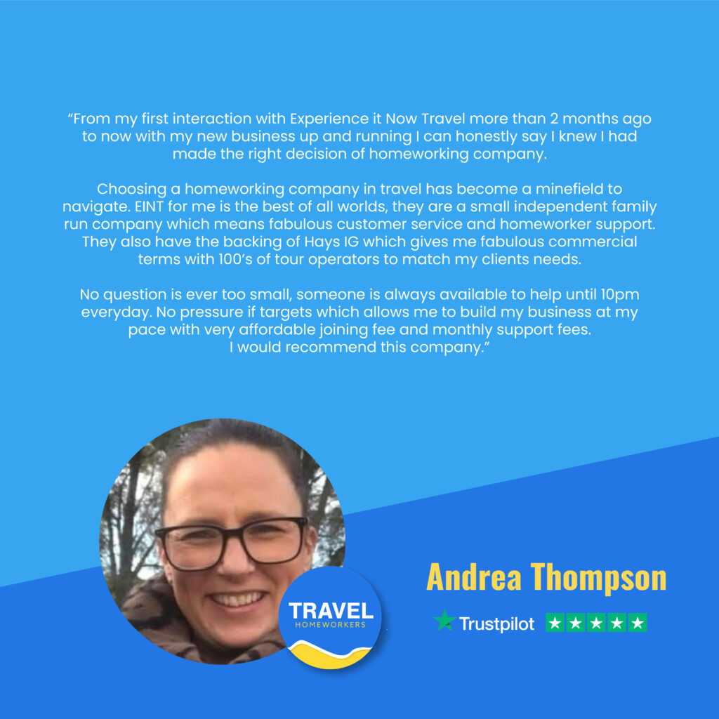Travel Homeworkers, part of the Experience It Now Travel Group and a proud member of Hays Travel Group, the UK’s largest independent travel agency. Whether you’re experienced in the industry or brand new, our flexible opportunities are designed for everyone. Today, more than 165 homeworkers are already enjoying the freedom of working from home, with full support, training, and the backing of a trusted high-street travel group. With 70% commission, access to over 300 top suppliers, and guidance from our expert team via phone, email, WhatsApp, and in-branch support, becoming a travel homeworker has never been easier.