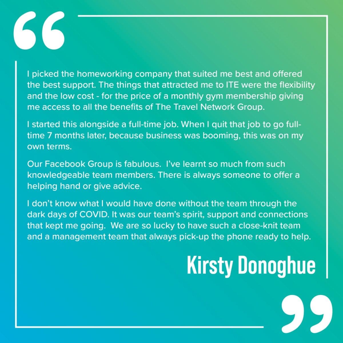 - ITE Facebook team page enabling all our homeworkers to interact and share ideas