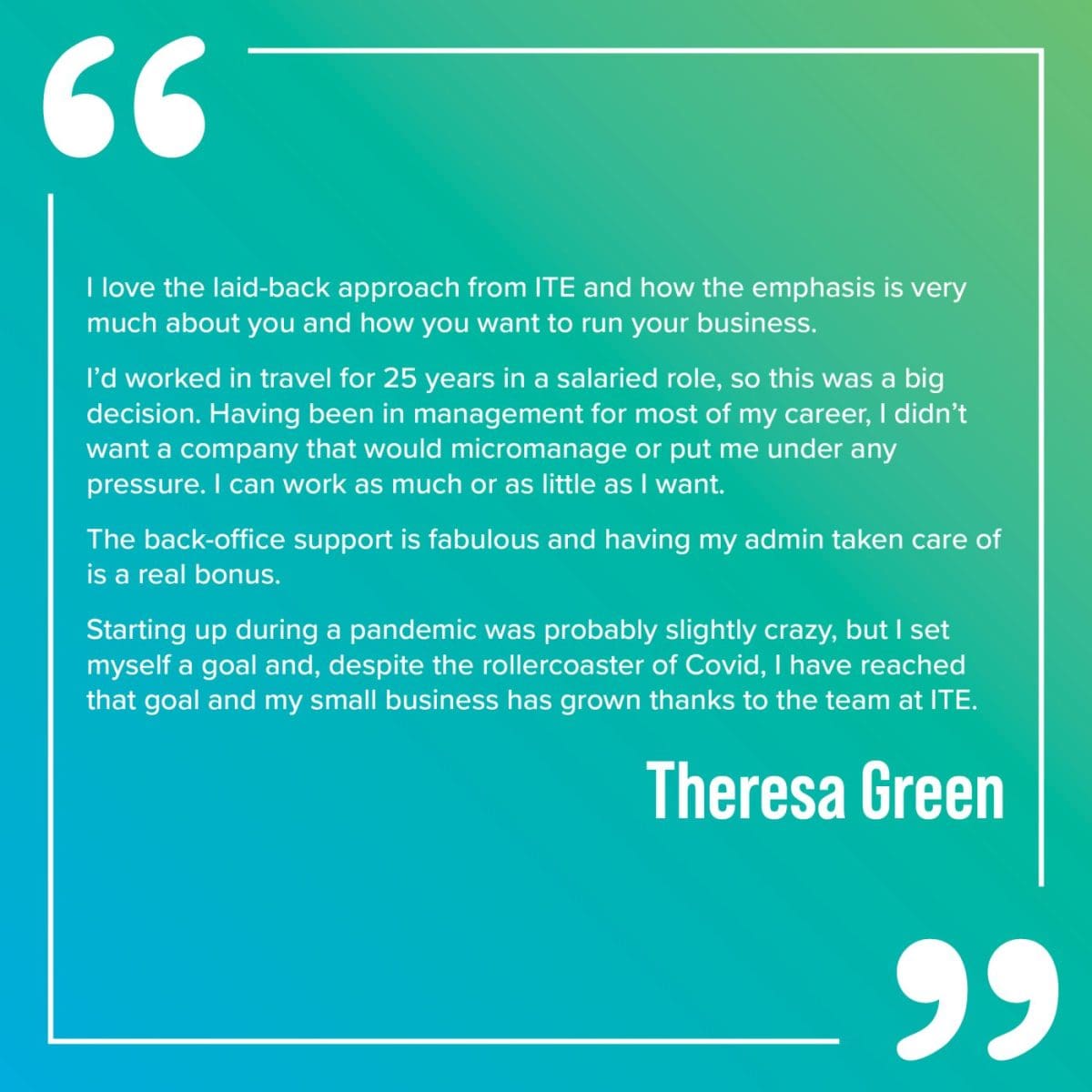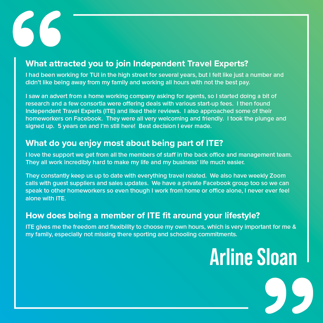 Independent Travel Experts (ITE) are part of The Travel Network Group, giving you and your customers 100% financial protection for over twenty five years. You will have all the freedom you need to drive forward your own business yet have the security of having one of the UK’s most successful travel companies to turn to should you need support and guidance.