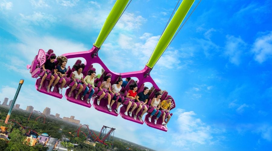 Close by is the Serengeti Flyer (pictured), the world’s tallest and fastest ride of its kind. Soar higher and higher above the park’s expansive 65-acre Serengeti Plain while experiencing multiple negative-G moments.