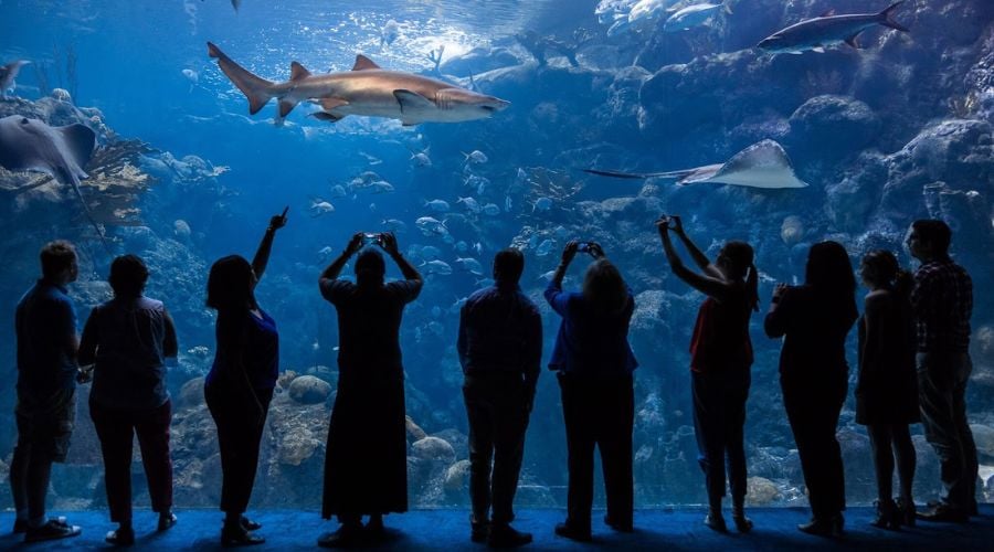 An outdoor plaza boasts a splash pad children’s play area, The Cove bar, and Penguin Pavilion and there are opportunities to learn from aquarium staff during interactive experiences.